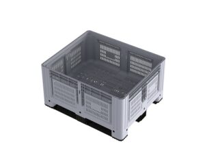 Contenedor o Pallet Box rígido de medidas 1200x1000mm con 3 patines y una capacidad de 456 litros. Dispone de paredes y fondo rejados que favorecen la correcta ventilación del producto, con superficies lisas y esquinas redondeadas, lo que convierte a nuestro contenedor en una solución imprescindible para el sector hortofrutícola. Fabricados en HDPE Virgen, ofrecen un mínimo índice de roturas, siendo una solución muy resistente y estable en el apilamiento. Diseñado para maximizar el volumen de carga interior. Apto para manipulación por caminos de rodillos y volteado.