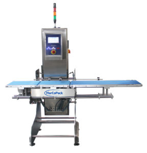 Fabricada en acero inoxidable y compuesta por hasta tres transportadores:uno de entrada que sirve para distanciar los productos, uno de pesaje y un tercero para salida o expulsión del producto.