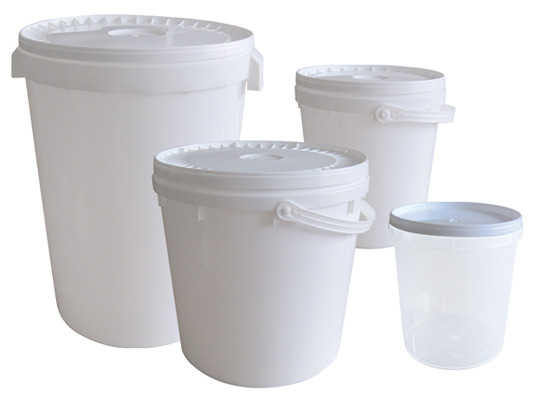 Opción cubo rectangular de 5 L en blanco y transparente.