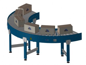 Transportador curvo de rodillos cónicos por gravedad para procesos de packing, perteneciente al grupo de máquinas para la manutención. Puede transportar cajas, bandejas, contenedores de plástico, paquetes… Los rodillos cónicos nos garantizan un transporte seguro y silencioso de la carga, consiguiendo que ésta permanezca centrada en todo momento, siendo prácticamente prescindibles las guías laterales.