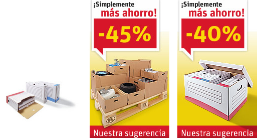 Resistentes cajas de archivo con zona para rotular en lomo y tapa.