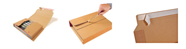 Embalaje ecológico marrón, con solapas autoajustables a la altura de la carga y cierre autoadhesivo.