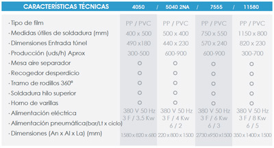 Empaquetadora termorretráctil de túnel con una amplia gama de dimensiones de soldadura, trabaja con todo tipo de films termocontraíbles.