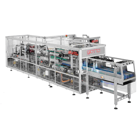 La encartonadora Giotto puede trabajar desde 15 a 50 cajas por minuto, con cajas, bandeja y cajas con tapa abierta.