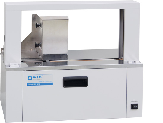 Con la enfajadora ATS-MSX 420 se pueden procesar bandas de papel o plástico en la misma máquina. Además, permiten utilizar bandas de plástico fino de un grosor superior a 60 µ. Gracias a las funciones preprogramadas de “pausa” y “soft” (para productos blandos), “prensado” (para una mayor tensión de la banda), la máquina resulta fácil de manejar. Con esta máquina móvil y económica, enfajará los productos de una forma económica y cuidadosa.