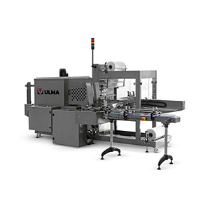 Enfajadora automática con entrada perpendicular marca ULMA, modelo SVA90º , de diseño modular para envolver con film retráctil en lámina una gran gama de productos individuales y agrupaciones.