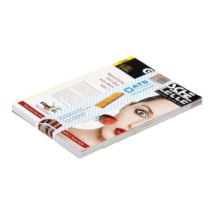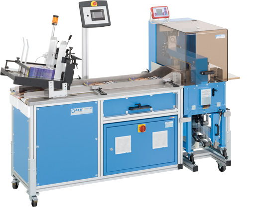 La banda transportadora totalmente automática con aplicador agrupa sus productos de manera rápida y segura y los enfaja sin dañar los bordes.