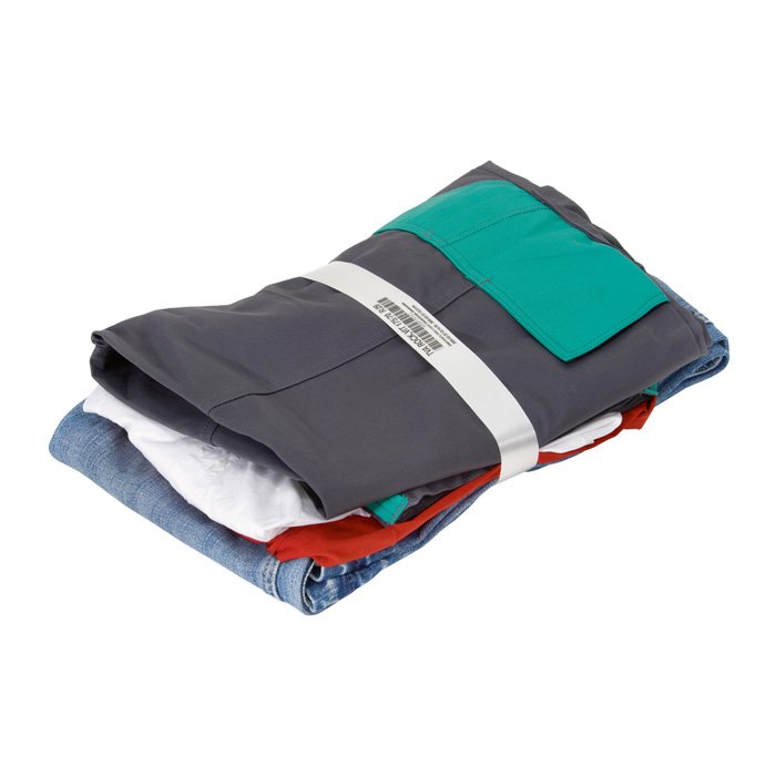 Recibe las pilas de ropa de las máquinas plegadoras y enfaja
