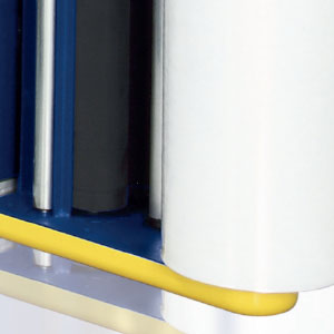 - Carro PVS – Carro con rodillos de pre-estiraje, con doble motorización independiente, con regulación, desde el cuadro, de la relación de pre-estiraje desde 150% hasta 300%. Fuerza de depósito del film sobre la carga, regulable desde el cuadro y controlada por el dispositivo electrónico patentado.
