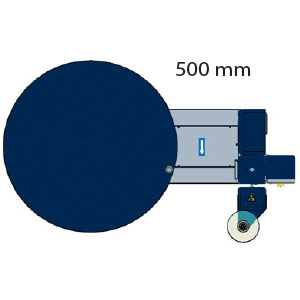 - Plato giratorio 1650 mm – El nuevo plato giratorio con introducción de horquilla anterior y posterior, garantiza el máximo de la flexibilidad en el movimiento de la máquina. El plato está montado en rodillos bolas, con alta capacidad de carga. El arrastre del plato se realiza mediante una cadena de alta resistencia, para evitar deslizamientos y asegurar la constancia absoluta en la rotación. El plato está construido con chapa estriada, para asegurar una mayor adherencia del banco, evitando así que el producto resbale durante la envoltura.