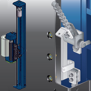 - Mástil – El mástil de acero está construido con una estructura tubular, lo cual le confiere una alta rigidez de torsión y de flexión; estas características hacen que el mástil sea más resistente. La cadena, a alta resistencia ,transmite el movimiento de subida y bajada del carro, asegurando un control optimal del envolvimiento. Además el dispositivo anticaduta la garantiza máxima seguridad en caso de emergencia.