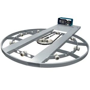 - Soporte del plato – El plato gira sobre los rodillos bolas en par, que garantizan un mayor soporte de la carga. Los rodillos están cubiertos con material polyacetal, en matriz de fibra de vidrio, que asegura el bajo coeficiente de fricción durante el movimiento de la mesa y una altísima resistencia a la compresión, además de una elevada estabilidad en cuanto a posibles deformaciones. Todo esto garantiza las mejores prestaciones posibles y un reducido desgaste de las partes móviles de la mesa.