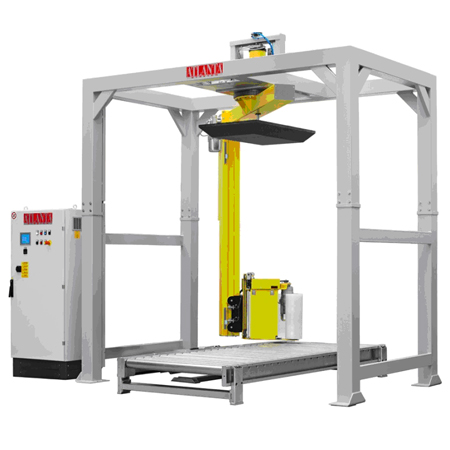 El sistema de pinza para el corte de film es autorregulable y sirve para cualquier dimensión de palet.