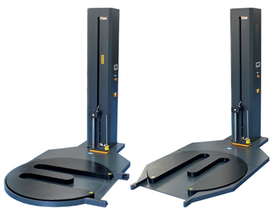 La estructura básica consta de una base con una plataforma giratoria y una columna donde está integrado el conjunto del carro portabobinas y el cuadro eléctrico.