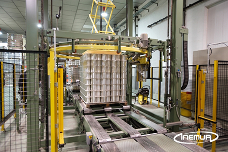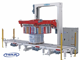 Completamos nuestras líneas con la más amplia gama de soluciones para la adecuación de los palets a su almacenaje y transporte por medio de los equipos de enfardado que realizan la envoltura de palets con film estirable por medio de brazo giratorio o de anillo giratorio, dependiendo de los formatos y producciones. Ambas variables de enfardado garantizan una total estabilidad de la carga del palet.