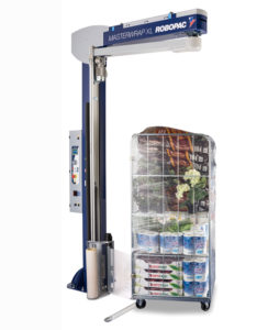 MASTERWRAP envuelve palets de hasta 1200×1200 mm con una altura máxima de 2000 mm, existe también la opción del mástil 2400 mm para llegar a envolver con film estirable palets de altura 2400mm.