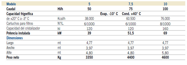 Línea para la estabilización tartárica de partidas de vino adecuadas y homogéneas de última generación.