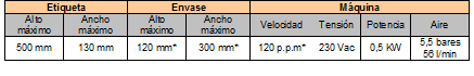 * Velocidad dependiendo del modo de funcionamiento (peso fijo/peso variable), así como el tamaño del envase y de la etiqueta.