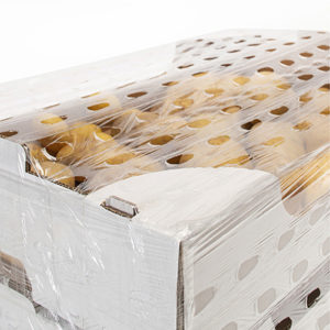 Retractilado seguro y con aireación, con nuestro film estirable perforado. Una solución ideal para productos que requieren circulación de aire durante el transporte.