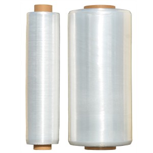 Hablamos del Film Preestirado de alta calidad, el cual es sujeto a un proceso de preestiramiento previo, con un grosor bajo entre 7 y 15µ. Gracias a la memoria del material este va oprimiendo la carga de igual forma que si lo hiciéramos empleando una enfardadora de palets con cabezal de preestiro.