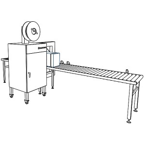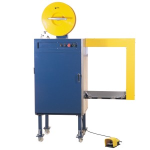 Especialmente indicada para el flejado de paquetes más altos que anchos: molduras de madera, aluminio, cajas de embutido, etc.