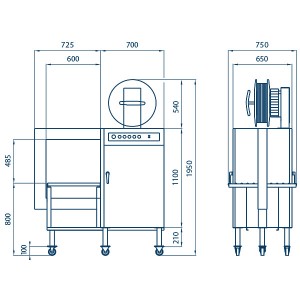 Dimensiones de la máquina embalada 1 bulto (250 Kg.) 155 X 80 X 201 cm. (Arco estándar 650 X 400 mm.).