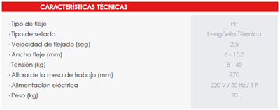 Concebida para asegurar el flejado de paquetes en modo semi-automático y adaptada a cualquier sector de actividad. El operador simplemente debe rodear el paquete con el fleje y la máquina realizará el resto de operaciones automáticamente asegurando un perfecto cerrado del mismo.