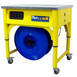 Flejadora semiautomática con cabezal REISO1400 de alto rendimiento y durabilidad. La flejadora de mesa de máxima calidad.