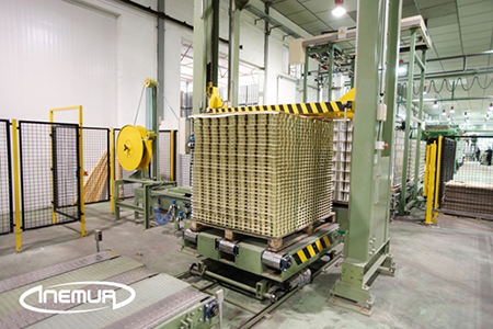 Las flejadoras verticales de INEMUR son la solución perfecta para la protección de los palets cargados de envases, gracias a la ligera compresión que el flejado efectúa sobre los mismos y al equilibrio de tensión que aplica en ambos vértices. Siendo ideal el flejado para proteger el palet durante su transporte.