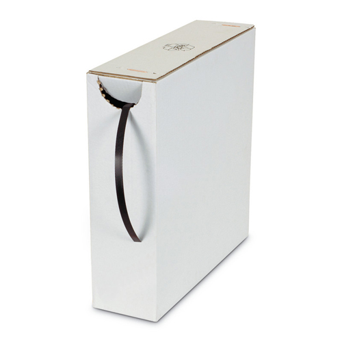 ¡A todas partes con usted! Los clásicos flejes negros de PP, suministrados en un práctico dispensador portátil.