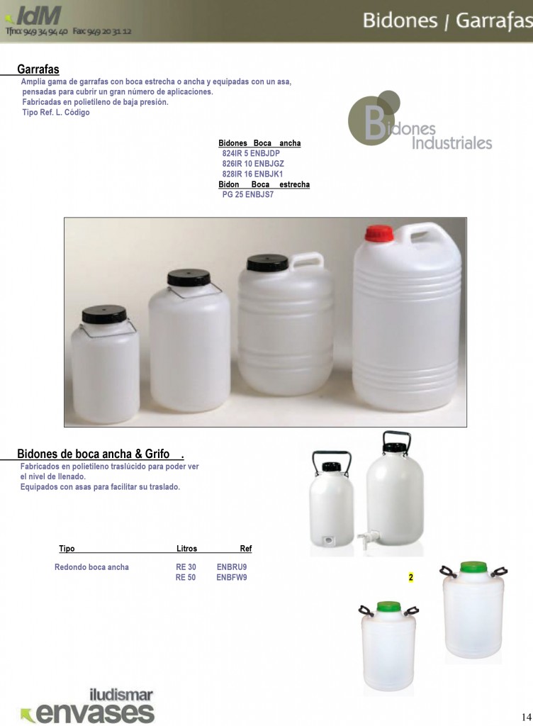 Amplia gama de garrafas con boca estrecha o ancha y equipadas con un asa, pensadas para cubrir un gran número de aplicaciones.
