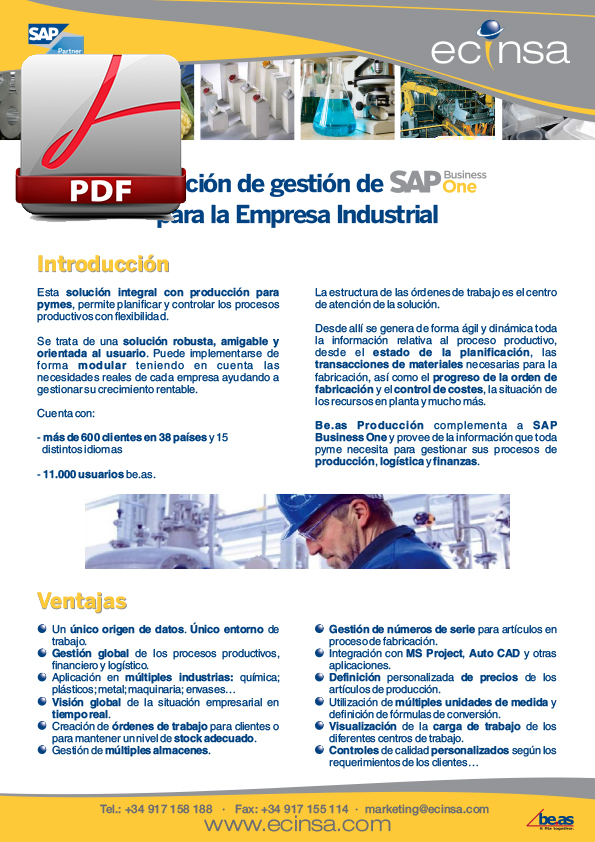 Gestión de la producción- be.as manufacturing. Este software para uso industrial o empresarial, se trata de una solución integral con producción para pymes, permite planificar y controlar los procesos productivos con flexibilidad.