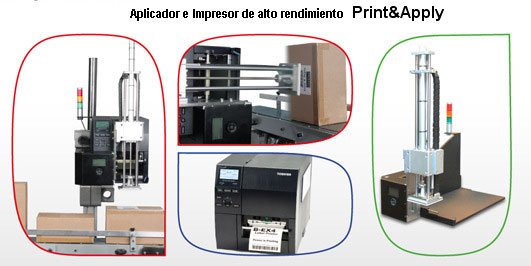El sistema con estructura integra de acero, esta montado sobre una base que integra la maniobra y cajas de control, que comunica el modulo de impresión de alto rendimiento con el sistema. Permite etiquetar bultos a distinta profundidad, utiliza etiquetas y datos de producción variable en tiempo real, como la opción de gravarlos en etiquetas RFID. La optimización de la cinta de impresión, gasta solo en las zonas de escritura.