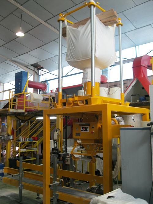 La instalación se alimenta mediante Big-bags, desarrollando para tal efecto un sistema que permite convertir un big-bag en un contenedor fácil de transportar y apilar, el centrado del mismo y su apertura se realiza en pocos minutos.