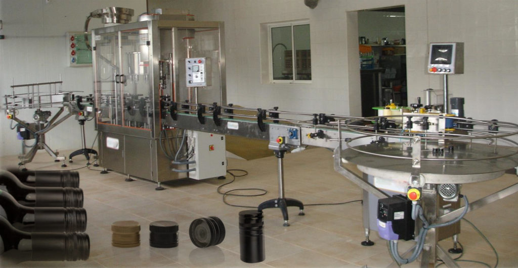 Línea completa de llenado de vino, en botella de vidrio con tapón tipo pilfer.
