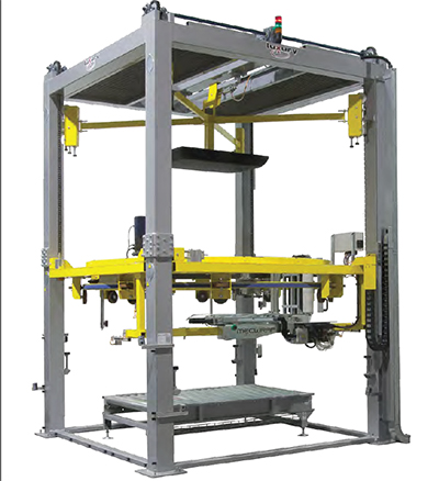 Envolvedora automática de anillo rotante para cargas paletizadas, concebida para la franja de mercado de medianas producciones horarias que, como se sabe, utiliza las máquinas de brazo giratorio.