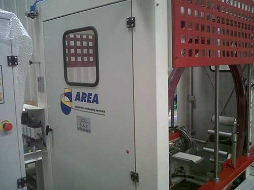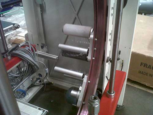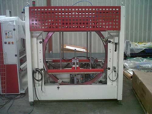 Máquina Enfardadora Orbital con un diámetro de 1400 y con aplicador de plástico burbuja ideal para la protección de puertas o cualquier producto de dimensiones similares. Permite el enfardado con film estirable tradicional y al mismo tiempo reforzar el sistema con plástico burbuja.