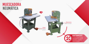 La peculiaridad de esta muescadora para las cantoneras de paquetes, es que esta maquina es neumática y libre de mantenimientos.