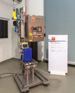 Envasadora móvil con diseño ATEX fabricada en acero inoxidable para el llenado automático de latas de 2,5 a 60 Kg.