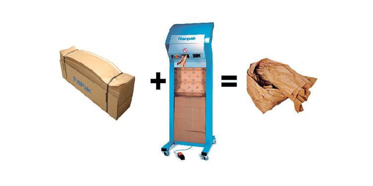 Los embalajes de protección interior Padpak y Fillpak convierten el papel kraft en almohadillas de papel para proteger productos y rellenar espacios vacíos en el interior del embalaje.