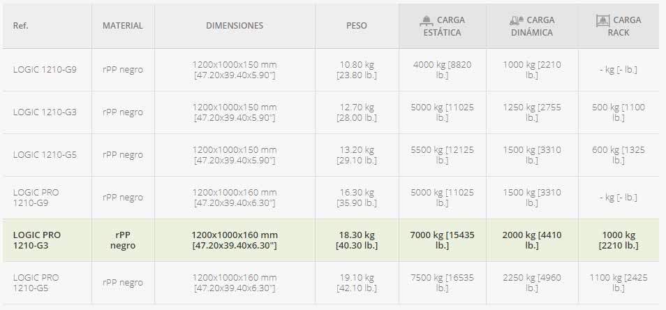Palet industrial de una sola pieza, dimensiones estándar y alta capacidad de carga, ideal para aplicaciones de reutilización. Apto para cualquier tipo de carga en todo tipo de usos y sectores. Compatible con todos los equipos estándar de manipulación.