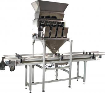 Máquina semiautomática para el pesado y envasado de productos varios, sólidos, en polvo, granulados, etc. en bolsas pre-conformadas ó contenedores.