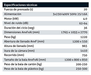 Esta prensa de embalar tiene una abertura de llenado amplia para manipular cajas de mayor tamaño, y la cámara lleva dos hileras de púas para mantener el material de residuo abajo, incluso si se trata de materiales muy extensibles.