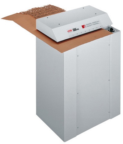 Transforma, con sólo mover una mano, cartones usados en material de embalaje gratuito que desaparece en los paquetes que están esperando en la salida de mercancías. Los cartones son arrugados y recortados simultáneamente gracias a rodillos especiales de copa. La máquina Profipak 400 transforma los viejos cartones en material de embalaje ideal.