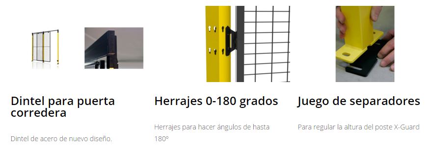 Para mejorar su sistema X-Guard, disponemos de diferentes accesorios que harán que su trabajo sea más ágil. Protección maquinaria X-GUARD Complementos, desde Bisagras, soportes,..,hasta un sujeta vasos, todo podrá fijarse fácilmente en los soportes X-Guard.