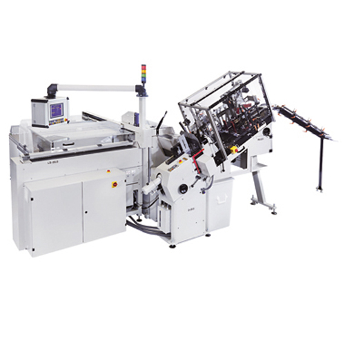 El operario de la cortadora corta el pliego sólo en tiras, lo cual es sencillo de hacer y lo puede hacer cómodamente en muy poco tiempo. Luego se empujan las tiras, individualmente o varias a la vez, manual o automáticamente en la mesa de alimentación de la ATLAS-40. El proceso posterior se realiza luego de modo totalmente automático (sin operario): compensación, separación en 1–4 tiras (según el ancho de tira), corte, cortes intermedios y enfajado final en 1–4 estaciones.