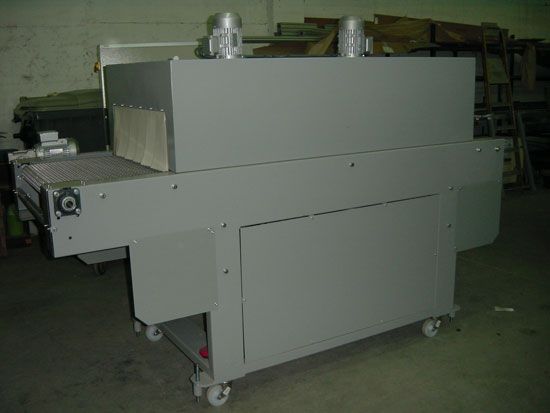 Túnel para el retractilado de productos envasados con film de polietileno o polipropileno.