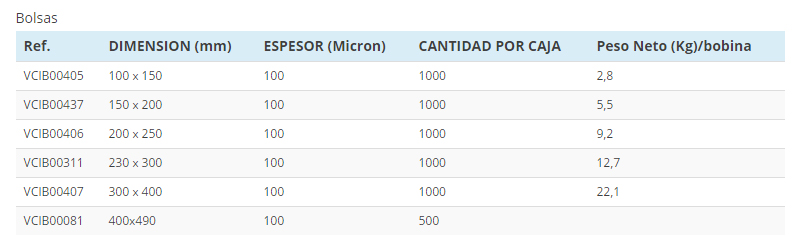 Ofrecemos una amplia variedad de tamaños de bolsas, siempre disponibles en stock para un envío inmediato, también ofrecer tamaños personalizados acorde con el cliente y su aplicación definitiva.