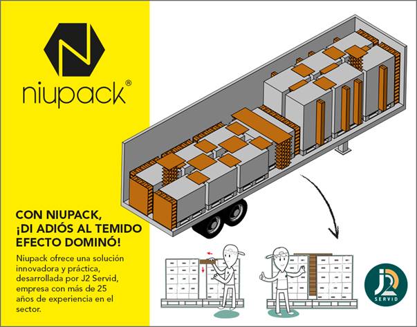 J2 Servid ha desarrollado el producto Niupack (conocido normalmente en América como Voidfiller), y que se utiliza para rellenar los huecos existentes entre medio de los palets, y así evitar movimientos de mercancías y sus posibles daños y posteriores reclamaciones. También disponemos de planchas y tiras separadoras de nido de abeja.